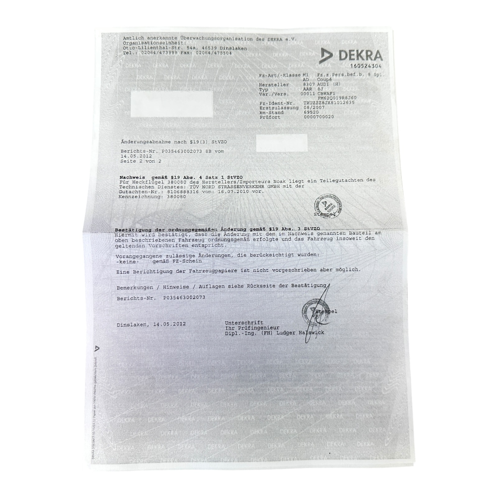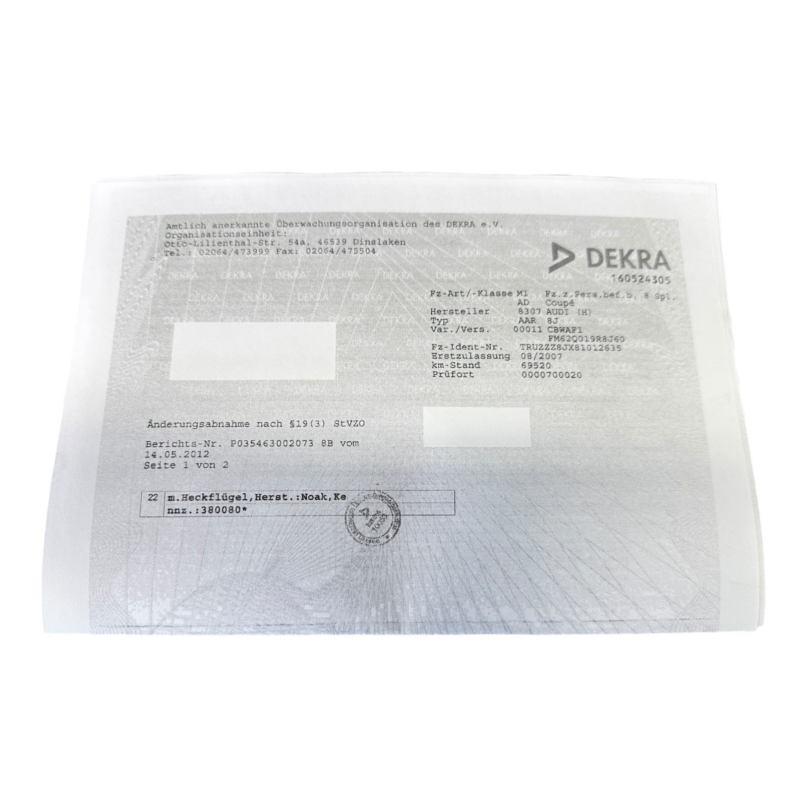 - Lackcode: LZ9Y - Pantomschwarz Perleffekt - das Gutachten für den Heckspoiler leigt uns... mehr